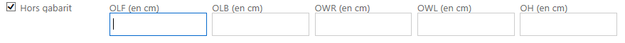 S’il s’agit d’un conteneur hors gabarit (Out of Gauge), je choisis l'option correspondante en précisant les caractéristiques suivantes :