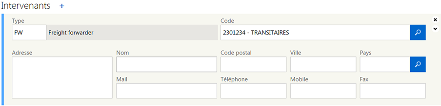 Je renseigne le type de cet intervenant (ex. : FW pour Freight Forwarder).