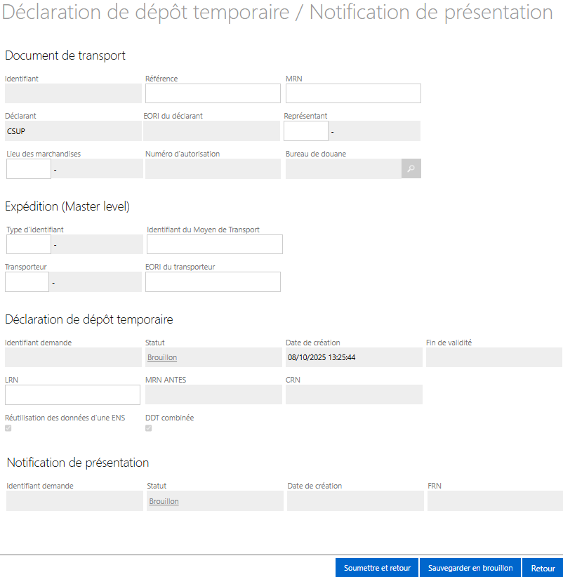 Ces déclarations de dépôt temporaire et notification de présentation peuvent être automatisées, ou créés manuellement.