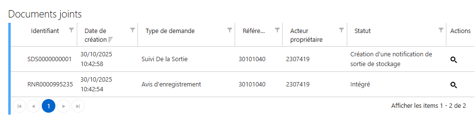 L'avis d'enregistrement est en statut intégré, ce qui a entraîné la création automatique d'un SDS.