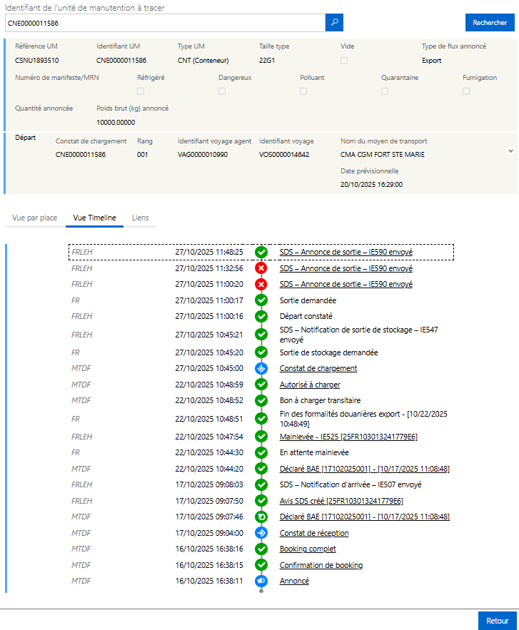 Dans le tracing de l'unité de manutention, je visualise l'autorisation « En attente mainlevée ».